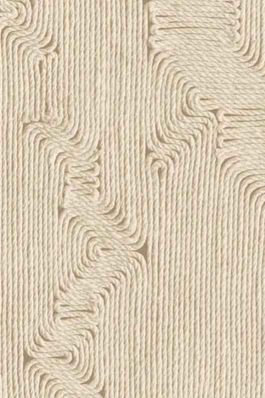 | Soort behang | Vinyl op papier/ ingelegd met fijne touwtjes in verschillende diktes waardoor relief ontstaat |