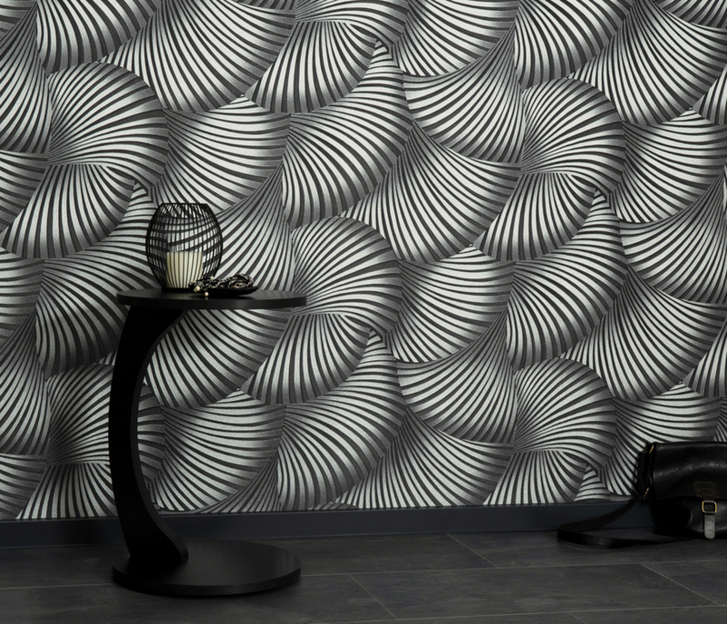 DWD Fashion for Walls 5 Behang 10542-15 UniDWD Fashion for Walls 5 Behang 10542-15 Uni Grijs Zwart Zilver Glans Effect Harde Afwasbare Vinyl op Vlies Textiel Structuur