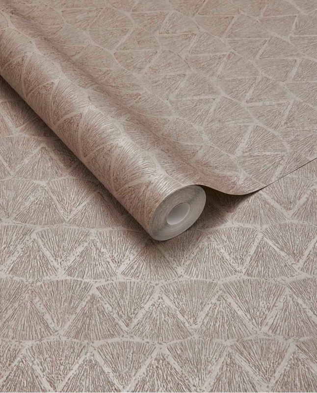 Eijffinger Sensory Behang 340342 Sint-Jacobsschelp/Schelpen/RuitenEijffinger Sensory Behang 340342 Sint-Jacobsschelp Schelpen Ruiten Dieren Hotel Chic bruin Taupe Roze Metallic Glans Structuur op Vlies